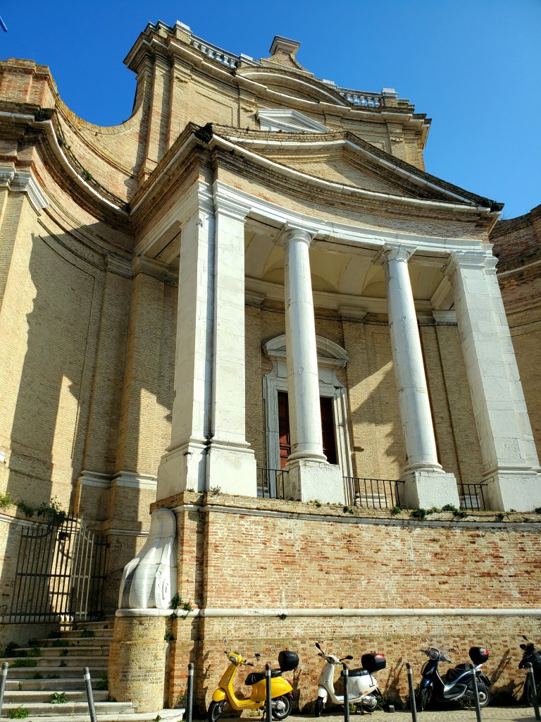 In Piazza Stracca, once the heart of the city’s government, the Chiesa del Gesù rises in front of the Palazzo degli Anziani. Designed by Luigi Vanvitelli, the graceful curved façade reflects the shape of the gulf. From the top of the church steps, a beautiful view opens over the square set above the sea, as shown in the video.