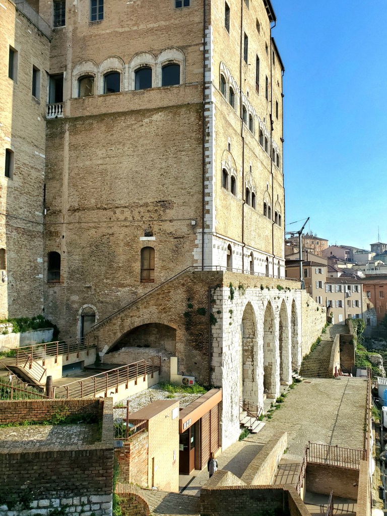 As we reach Piazza Stracca, we see the side of the Palazzo that faces the ancient main street. For centuries, these rooms were home to the city hall, until the bombing of the Second World War forced the offices to relocate.